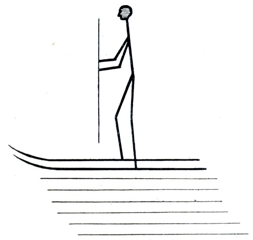 It will thus be seen that ski were extensively used in olden 6 times by the Scandinavians as well as others. They also found their way from Norway to Iceland and Greenland. Of ski there are many types. The skridsko (sliding shoes), or ski of the Lapps, appear, if one is to judge from old illustrations from the sixteenth century (Figs. 2 and 3), to have been veritable shoes, the feet being placed in a hole made for the purpose at the 7 heel of the ski. They are thus depicted as elongated (some 3ft. long) sabots. There is, however, no reason for assuming these sabot skis to have been the original form, for they were, at best, but a hybrid type of ingenious construction, possibly only used by the inhabitants of certain districts. The true Lapps’ ski, on the other hand, were comparatively short and broad, attached to the feet by toe straps and thongs, and covered with the skins of reindeer calves for the purpose of letting them glide easily without accumulating snow on the soles, of keeping the wood from splitting or fraying, and because, when thus covered, it was easier to ascend the slopes of the hills, the hairs which lay fore and aft, checking the tendency to slide backwards.