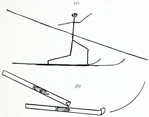 It may be of interest to mention here that, in remote parts of England, ski appear to have been employed so late even as the middle of the past century, their use being discontinued as communication with the outer world became easier. Thus, apart from information derived from other sources respecting finds of ski, or their remains in various parts, one gentleman, writing from Cumberland in February, 1904, states that, in the dales of Yorkshire and Durham, the sport is by no means new, and that forty years ago he went to his school on “skees,” which were made of beech wood, some 5ft. in length, with “nibs” about 3in., and that it was no uncommon practice in those days for the Weardale miners to go to and from their work on such snowshoes, it being a fine thing to see thirty or forty men gliding down the steep slopes from the mines at a speed equal to that of a railway train. The writer also adds that, amongst the youths, skee-jumping was a favourite pastime, and that he believes the practice was a very 3 old one from the fact that he knew boys of his own age who had come into possession of “skees” once owned by their grand-fathers.2