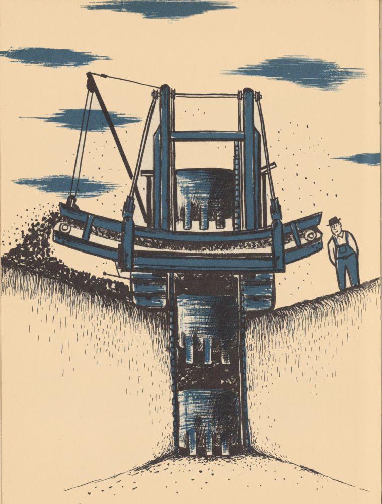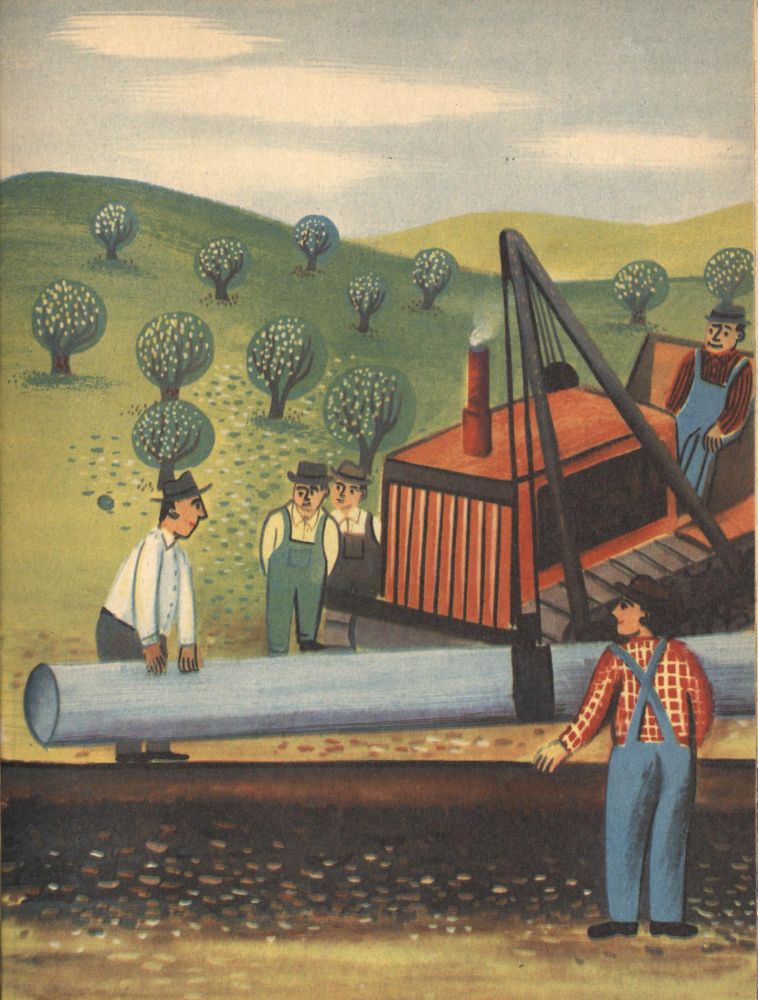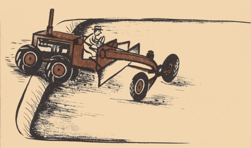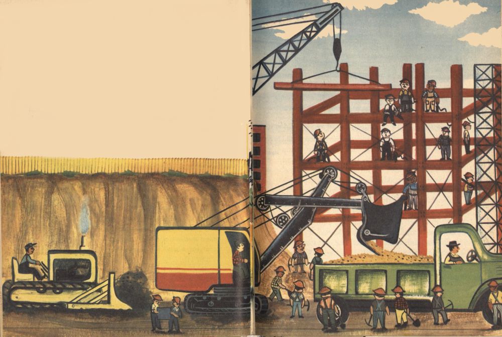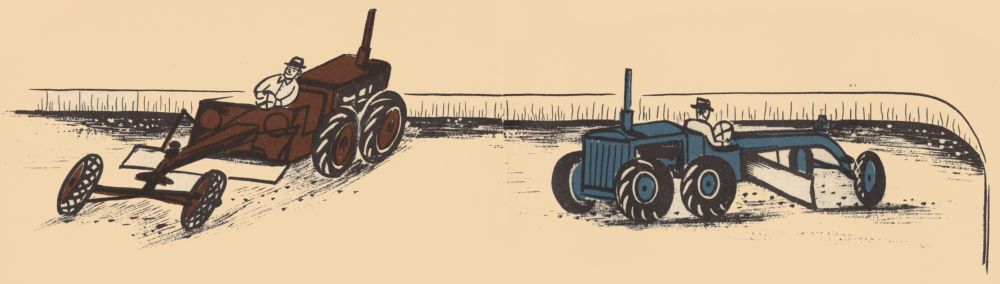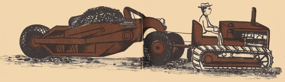 The author and the artist wish to thank the following for their help in making this book possible: Miss Elsie Eaves, Manager, Business News Department, Engineering News-Record; Margaret Gossett; Mr. Harold Spitzer; The Lamp, published by the Standard Oil Company (New Jersey); the Caterpillar Corp.; the General Motors Corp., the New Jersey Bell Telephone Co.; the Florida Land Clearing Equipment Co.; the Walker-Gordon Laboratory Co.; the many manufacturers of digging, road-building and other specialized machines; a bumper crop of tractor and farm implement makers; and farmer friends who proudly showed their equipment in action.