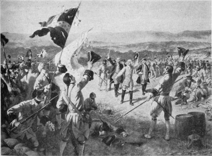 The three columns returned to the landing place on the 6th, and on the 7th the army again advanced, this time by way of the bridge over the small stream connecting Lake George with Lake Champlain. The French had destroyed the bridge in retreating but it was soon repaired. On the night of the 7th the whole army lay on their arms, in what is now the Village of Ticonderoga, and on the morning of the 8th advanced again in three columns to attack the Fort. In the meantime Montcalm had elected not to wait until the Fort was invested but to fight in the woods. With almost superhuman energy he threw an earthwork across the whole peninsula of Ticonderoga, about three-quarters of a mile from the Fort. It consisted of a great wall of logs, and an abatis of trees with their branches sharpened, a hundred feet or so from the trenches. He, himself, commanded the 31 center, the Chevalier de Lévis the right, and the Colonel de Bourlamaque the left. Early in the morning the British columns attacked. All through that hot, sultry July day the fight went on. Abercromby had established his headquarters at the French sawmill but had been deceived as to the strength of Montcalm’s defenses. In this fight the 42nd Highlanders, the famous Black Watch, suffered enormously. Many of the Highlanders fought their way through the abatis and some even reached the great log wall, only to be killed by bayonet or bullet. The Royal American, a regiment still in the British army as the King’s Royal Rifle Corps, had losses second only to the Black Watch. And at the end of the day Abercromby’s army was forced to retreat, leaving the French in command of the field. The British and Colonial losses in this fight were almost as great as the whole French defending force.