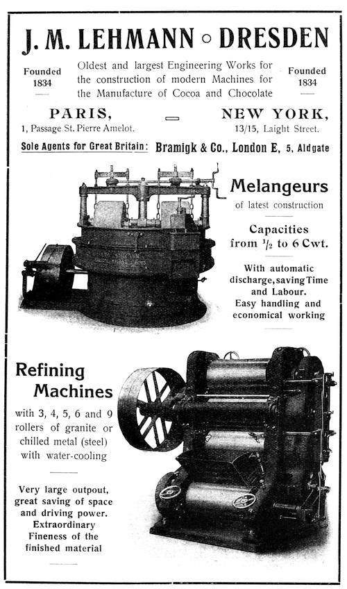 The author of this treatise has therefore endeavoured not only to describe the manufacturing processes; but he has also devoted special attention to the raw materials employed, and endeavoured to make them generally familiar by reference to the literature on the subject, as well as by providing a precise account of the chemical constituents of these substances and discussing the consequently necessary procedure to be observed in the course of manufacture. The art of chocolate making is no longer what it was a few decades ago; it has for the most part passed from small operators into the hands of large manufacturers. A short historical resumé will serve as a sketch of this development and a cursory description of some forms of apparatus which have now merely historical interest will serve to show how improvement in the industry has been effected.