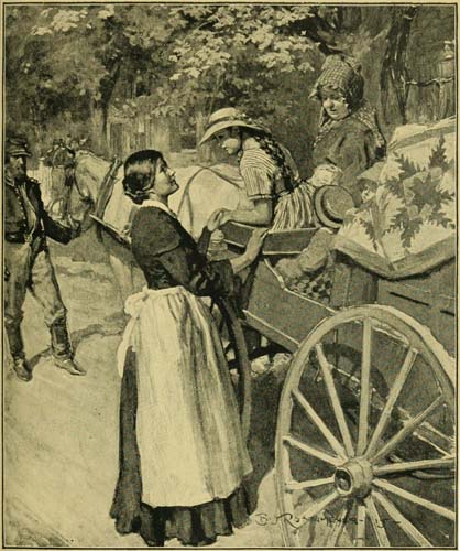 Presently Emmeline yawned. She could hear now unmistakably the sound of voices, but it was only the laughter of the pupils of the Young Ladies' Academy. Next year Emmeline would enter the academy; there[Pg 14] was at present, however, between her and those young ladies a gulf as wide as the Atlantic. She nodded to them, and then took the handle of the baby cart and proceeded on her way to the village store.