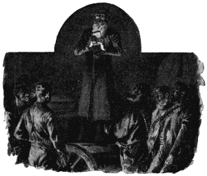 In diesem Augenblick war der Missionar bis auf kurze Entfernung herangekommen, und nun streckte er seine Arme gegen die Buern aus und rief laut: »Haltet ein, haltet ein, vergießt nicht das Blut dieser unschuldigen Leute! Im Namen Gottes haltet ein!«