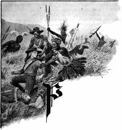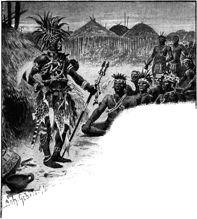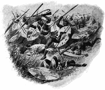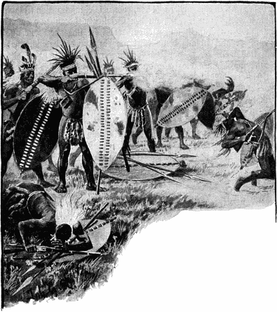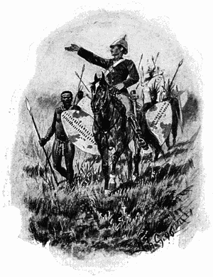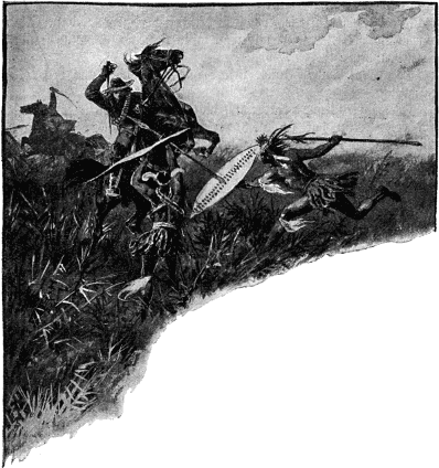 Pieter Maritz konnte dieser Scene nicht ohne das Gefühl des Mitleids für die Fremden zusehen. Er beobachtete die stolze Haltung, welche die schönen, schlanken und geschmeidigen Gestalten auszeichnete, und empfand in seinem Herzen die Neigung, ihnen beizustehen. Doch wagte er nicht, dem ehrwürdigen Ältesten der Gemeinde gegenüber den Mund aufzuthun, und er sah nur traurig[S. 17] zu, wie diese Leute, welche sich nicht verständlich machen konnten, von den Fäusten ihrer gemeineren Landsleute gepackt wurden. Aber nun schien der ältere von den beiden Verurteilten, indem er begriff, daß es sich um Leben und Tod handelte, einen neuen Entschluß gefaßt zu haben. Er stieß die Männer, die ihn hielten, mit einer kraftvollen Bewegung seiner nervigen Arme zurück und richtete dann an den Graubart in englischer Sprache einige Worte, aus denen zu verstehen war, daß er und sein Gefährte unter dem Schutze des Missionars ständen und Gesandte des Zulukönigs seien. Er redete das Englische sehr unvollkommen und mit einer schnalzenden Aussprache, doch war der Sinn seiner Worte klar, und das Wort Zulu traf alle, die es hörten, wie ein Schlag.