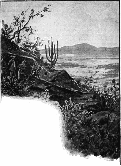 Indem der Reiter diese Worte mit schwacher Stimme sprach, lenkte er sein Pferd seitwärts nach dem Abhange des Berges zur Linken hin, in ein Dickicht. Das von der Sommerhitze verbrannte, lange, braune Gras, welches unter den Hufen des Pferdes und den Füßen des Knaben knisterte, hörte hier auf, und der Boden war mit frischen grünen Gewächsen bedeckt. Im Schatten hoher Agaven, deren gelbe Blumen hoch über dem Kopfe des Reiters leuchteten, hatte sich die Erde von dem letzten Gewitterguß feucht erhalten, und brennend rote Pelargonien, sowie die schirmförmigen, himmelblauen Blütenrispen der Kaplilie schimmerten zwischen dem Grün. Der Reiter richtete einen forschenden Blick auf die Gestalt der Felsen, deren rotbraune Flächen zwischen den Büschen hindurchschienen, und trieb das Pferd tiefer in das unwegsame Dickicht hinein. Kaktusbüsche von mannigfaltiger Gestalt, mit furchtbaren Stacheln bewaffnet, versperrten hier und dort den Weg und nötigten zu Umwegen, Schlingpflanzen zogen sich von Busch zu Busch und erschwerten das Vorwärtskommen. Endlich aber war die gesuchte Stelle erreicht. Eine mit grünem Moose überzogene Felswand zeigte sich dem Blicke. Hierher schien die Sonne nicht, denn sie richtete ihre Strahlen auf die andere Seite des Gebirges, und die Felswand lag im Schatten. Ein erfrischender Hauch ging von ihr aus, so daß das Pferd den Kopf erhob und mit den heißen Nüstern durstig schnupperte. Silberhelles Wasser rann in unzähligen Tropfen die Moosdecke hinab und bahnte sich einen Weg nach dem Thale hin.