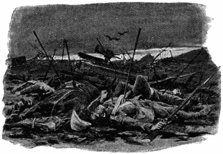 Hiermit schien der Urteilsspruch besiegelt zu sein, und zwei von den Buern warfen ihre Büchsen über den Rücken und gaben den Dienern einen Wink, die Gefangenen hinaus aufs freie Feld zu führen. Die Diener aber nahmen diesen Wink mit Freude auf, stießen ein Triumphgeheul aus und begannen die Verurteilten hinwegzuzerren.