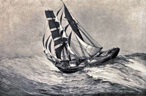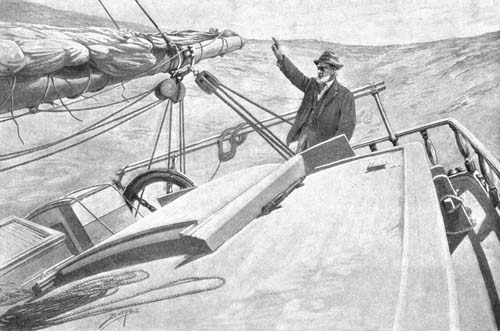 He went up deliberately, turning his eyes neither to right nor to left until he saw the crosstrees just overhead. Stopping, he thrust a leg between the ratlines to steady himself, and gazed ahead once more. It had grown lighter, and he could now plainly distinguish the blurred line where sky and water met. Suddenly, far ahead, he saw a little point of light grow out of the blackness of the night, flash for a moment, and then disappear. His heart leaped in exultation, but he waited, to be sure. Again it flashed and disappeared. Marking its position well, he hurried to the deck and aft.