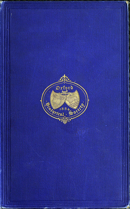 The 5th (and last) vol. of Clark’s edition of Wood’s Life and Times, the 3rd (and last) vol. of the same Editor’s Wood’s History of the City of Oxford, the 2nd vol. of the Cartulary of St. Frideswide’s edited by the Rev. S. R. Wigram, the 4th vol. of Hearne’s Diaries edited by C. E. Doble, Esq., the Place Names of the diocese of Oxford, Collectanea III, edited by Prof. M. Burrows, and other volumes are in active preparation.