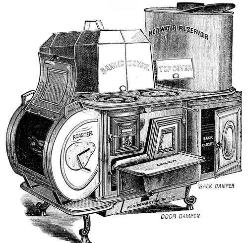 The general Properties of Heat, Conduction, Convection, Radiation, Reflection—Cooking done by Radiation the simplest but most wasteful Mode: by Convection (as in Stoves and Furnaces) the cheapest—The Range—The model Cooking-stove—Interior Arrangements and Principles—Contrivances for economizing Heat, Labor, Time, Fuel, Trouble, and Expense—Its Durability, Simplicity, etc.—Chimneys: why they smoke, and how to cure them—Furnaces: the Dryness of their Heat—Necessity of Moisture in warm Air—How to obtain and regulate it 182