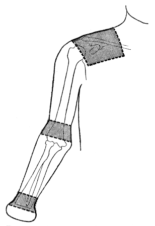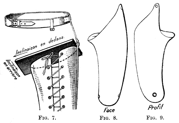 Throughout the volume it will be found that we[xiv] express a preference for the construction of artificial limbs for the lower limb out of wood, the method adopted by the Americans. This procedure, because strength and durability are so necessary, seems to us to constitute a very real advance; these considerations are, however, of much less importance in the case of the upper limb. It is a matter for regret that the French official instructions have not compelled our manufacturers to adopt this technique, too often the latter are inclined to keep to their old routine, but they can be induced to alter it, as we have proved by our success at the Fédération des Mutilés.