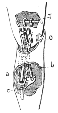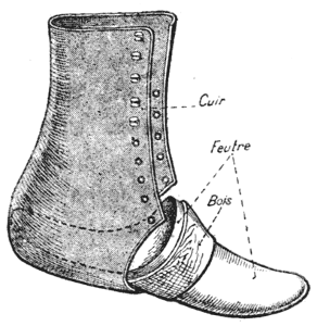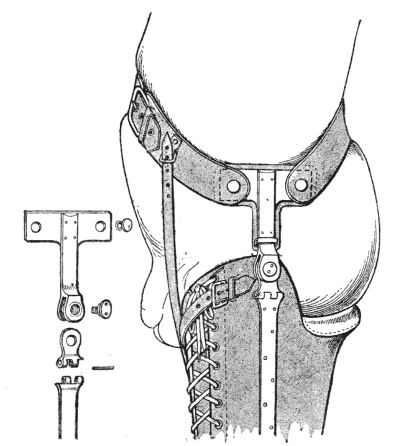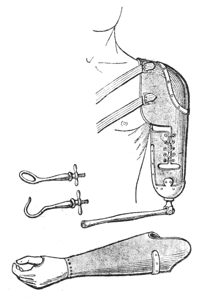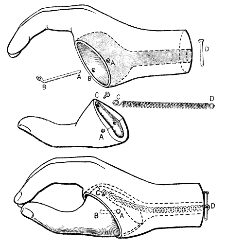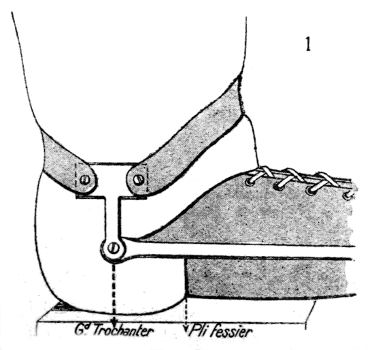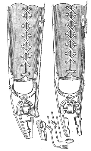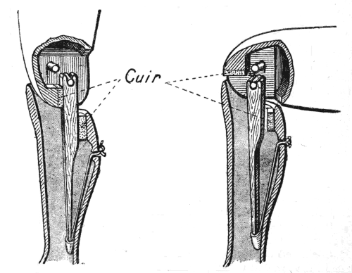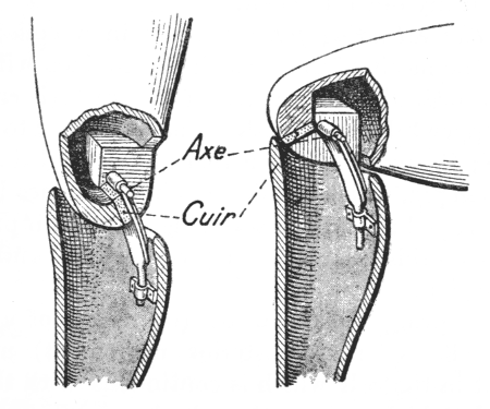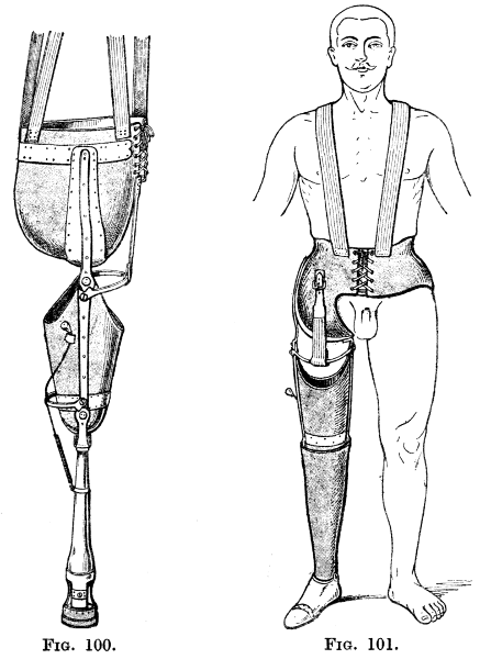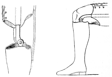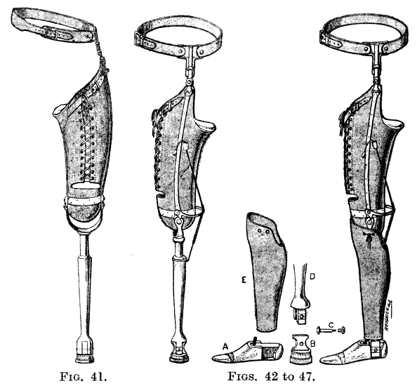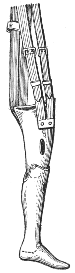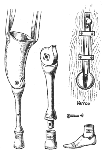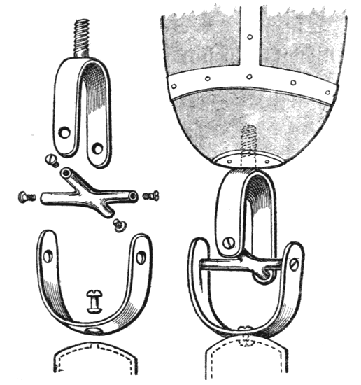 The introduction of American artificial legs into[xvi] this country has not been so revolutionary in its results as it is apparently in France, for we have been accustomed for many years to make the bucket out of a single piece of willow. The alterations in our methods introduced recently from America are essentially the following—