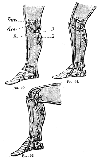 The sole remaining problem in the design of artificial legs appears to be the invention of a knee mechanism which will lock in any degree of flexion when a strain is put upon it, so that the wearer does not necessarily fall when his weight comes upon the limb with the knee flexed. A recent invention, still on its trial, seems to indicate that this problem is not incapable of solution.