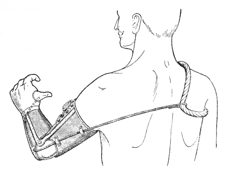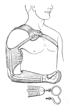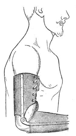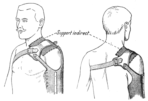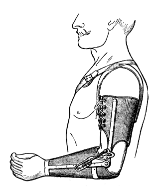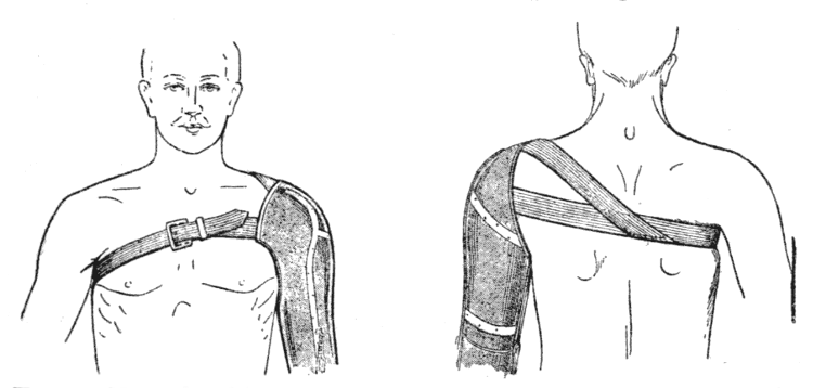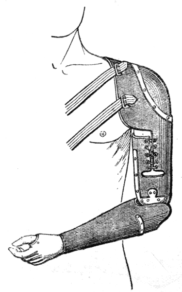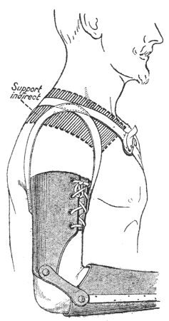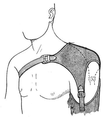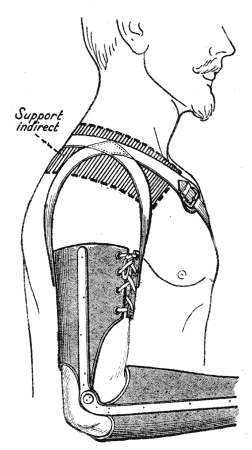 1. A smaller enclosure of the shoulder region for purposes of suspension, the limb being held on by a harness of straps. We, in fact, value mobility of the shoulder, and gain it at the expense of stability.
