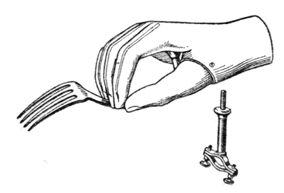 Much ingenuity has been expended on the design of mechanical artificial hands, with results which are satisfactory so far as they go, but which require much further development before the hand can possibly replace even a few of the appliances which can be substituted for it. For this reason it should be made an invariable rule that the artificial hand, however ingenious and however apparently perfect it may be, should be detachable, so that it may be replaced by other appliances.