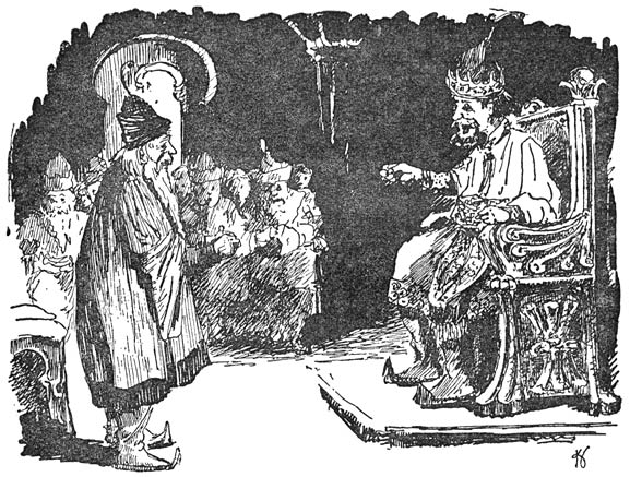 ’t Werd nog stiller, toen de keizer uitgesproken had, zóó stil alsof er heelemaal geen mensch aanwezig was. De keizer keek de zaal eens rond, of hij verwachtte, dat de een of de andere nog iets in ’t midden zou brengen. En dat gebeurde eindelijk ook. De raadsheer met de witte baard stond nogmaals op en zei: