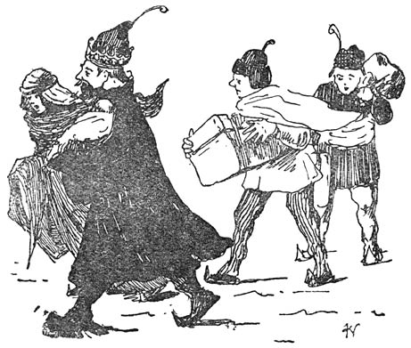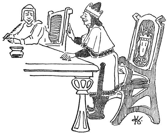 „Nu,” zei de koning plechtig: „Als jullie ’t dan niet weet, zal ik ’t zelf maar zeggen. De raadsheer van ’t gerechtshof heeft me op de idee gebracht. De kroonprins zal heeten: A.”