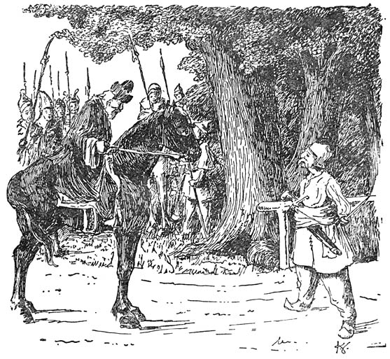 „Goeie morgen” zei Abé z’n paard inhoudend. „Wonen er hier geen menschen in de buurt?”