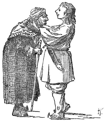 „Dank je wel heertje …” zei de man de zak aannemend. „Daar zou ik raar mee gezeten hebben. D’r zit eten in voor de heelen dag.”