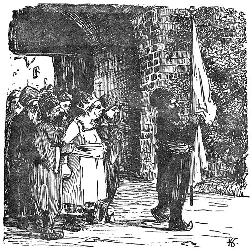 ’n Stil nest was het. Een van de kleinste stadjes aan de grenzen van Huk, waar je bijna nooit iemand op straat zag. ’t Leek soms wel of er heelemaal geen menschen woonden. ’t Gras groeide er tusschen de straatsteenen, doch dat was enkel maar op de markt, want in de nauwe straatjes hadden ze de keien maar vergeten.