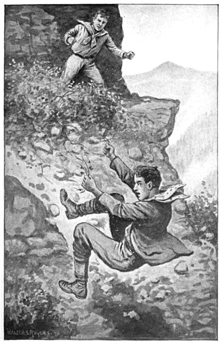 “If a fellow slipped down there I wonder where he would land,” murmured Roger, as he held back his steed so as to give his companion a chance to pick his way with care.