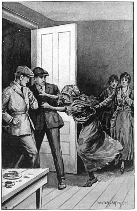The men who had accompanied Dunston Porter needed no further urging. They knew many of the particulars concerning the case, and had been promised a large reward if they would give their aid in rounding up the kidnappers and saving the two girls. One man was a local constable, and two were detectives, while the others were men who had been picked up in the town and pressed into service because of their strength and willingness to fight. The whole crowd leaped from the automobiles and lost no time in giving chase to the fleeing criminals.