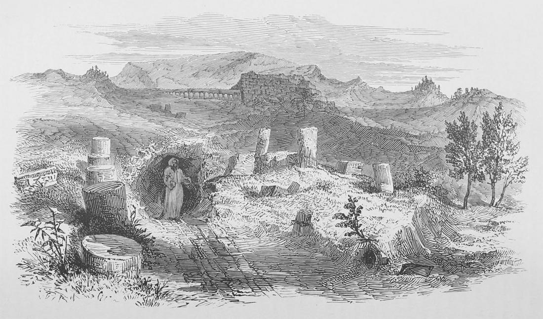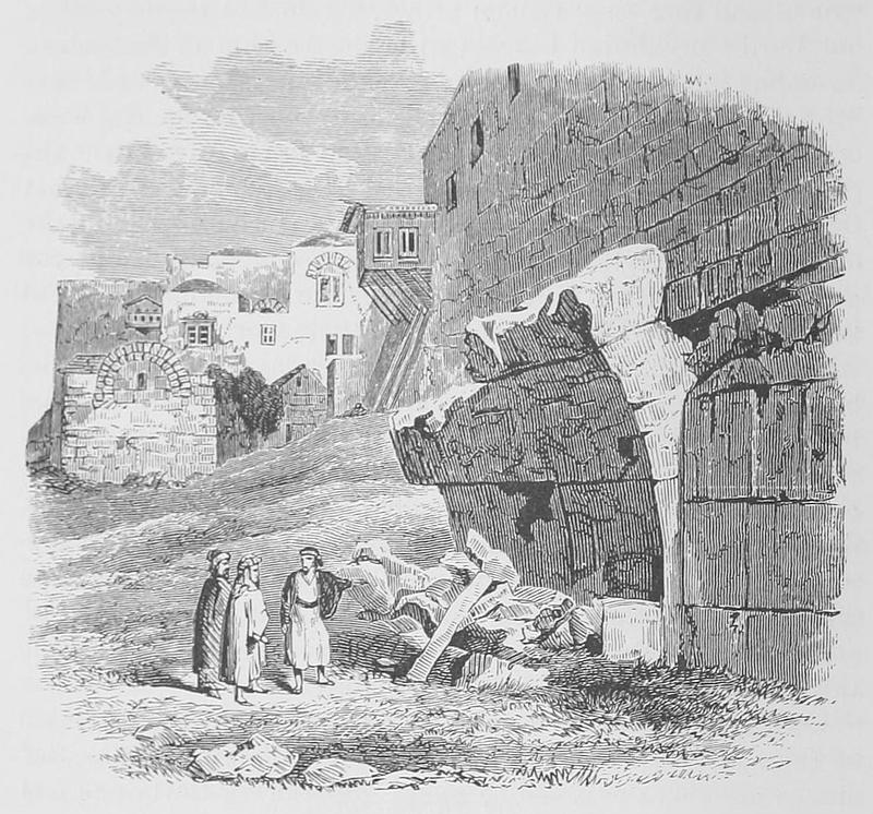 Seeking in vain for an entrance other than that on the north, we returned to daylight full of curious thoughts. What tales of woe are written on these walls! and, could we hear their voices, too low for mortal ear, what secrets would they reveal! In the time of sieges this has been the retreat of Jew and Christian, of Saracen and knight; the last refuge of helpless womanhood, of tender children, of infirm old age, and the death-bed of dying heroes wounded in the fight.