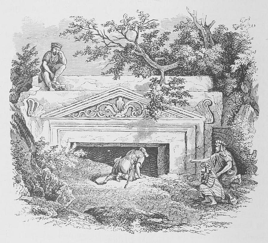 Until the uncivilized and uncivilizing Turk is driven from the holy city, and until Christendom owns that religious metropolis of the world, and until the archæologist can pursue his noble work unmolested, two questions will remain in dispute—the site of Calvary and the site of the tomb of Joseph of Arimathea. Greeks and Latins claim that both are within the Church of the Holy Sepulcher, a claim which rests upon the traditions of centuries, but which can never be substantiated beyond a doubt until the second wall of the Jerusalem of Christ can be definitely traced. Both English and American explorers of to-day place Calvary on the ridge over the Grotto of Jeremiah, north of the city and near the Damascus Gate. From immemorial time this has been called the “Hill of Execution;” it resembles the human skull, and the Jews esteem it accursed, and exclaim as they pass it, “Cursed be he who destroyed our nation by aspiring to be king thereof.” And to the west of the hill, two hundred yards north of the Damascus Gate, on one side is a lane leading to St. Stephen’s Church, and opposite is an arched gateway of stone, with wooden door, which opens into a garden, and in the garden is the tomb. The tomb has never been finished, yet it has been occupied; its construction is Herodian, about the time of Christ; it has been occupied for only one burial; it is a Jewish tomb and designed for one of wealth and influence; it has been used for Christian worship, and upon its walls can now be traced faintly a frescoed cross with the sacred monograms.