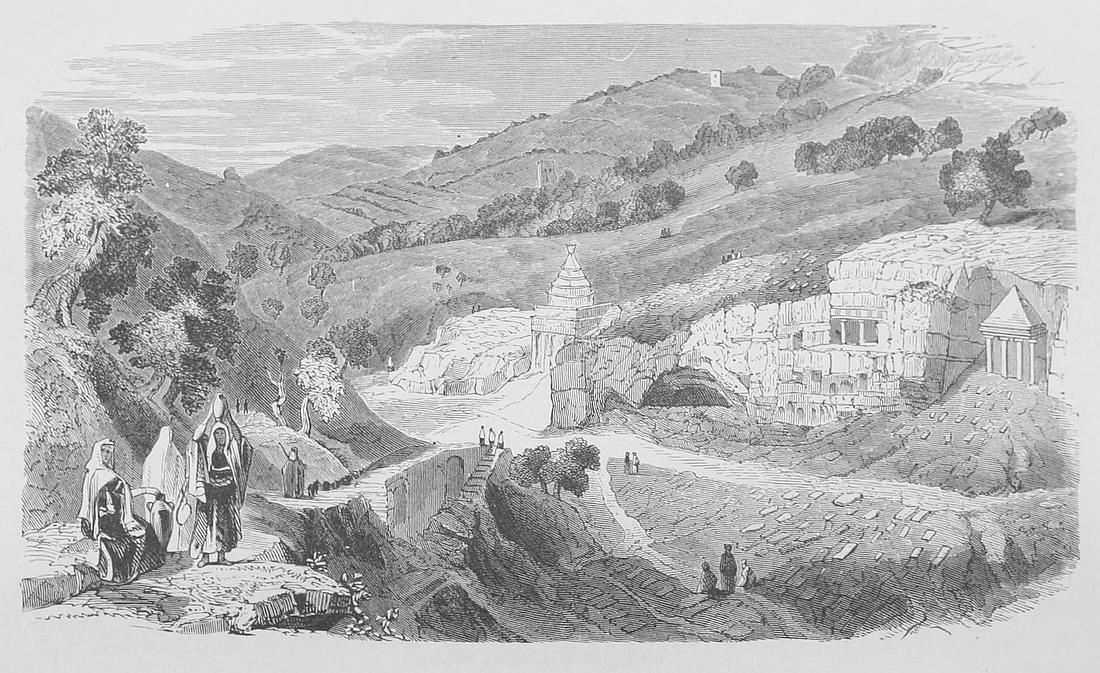 Valley of the Dead.—Tombs of the Judges.—Of El-Messahney.—Of the Kings.—Valley of the Kidron.—Pillar of Absalom.—Traditional Tombs.—Jews’ Cemetery.—Funeral Procession.—Mount of Offense.—Virgin’s Fountain.—Gardens of Siloam.—Bridal Party.—Pool of Siloam.—Of En-Rogel.—Vale of Hinnom.—Burning of Children.—Valley of Slaughter.—Potters’ Field.—Solomon’s Coronation.—Pools of Gihon.—Pool of Hezekiah.—Supply of Water.