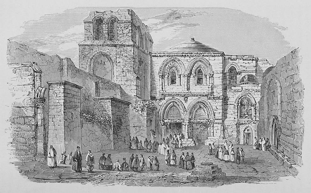 Laws of the Credibility of Tradition.—Dean Trench on Words.—Scenes of the historical Events of Christianity not well defined.—Palm Sunday in Jerusalem.—Crossing the Mount of Olives.—Journey to Bethany.—Site of the City.—Home of Mary and Martha.—Tomb of Lazarus.—Christ frequented Bethany.—To his Visits is due its Significance.—Touching Legends.—Resurrection of Lazarus.—Scene of Christ’s triumphal March to Jerusalem.—Garden of Gethsemane.—Old Gardener.—Walls and Iron Gate.—Place of Sweet Repose.—Flowers.—Pictures.—Aged Olive-trees.—Overwhelming Emotions.—Ascent of the Mount of Olives.—Three Paths.—David’s Ascent.—Connection of the Mount with the two Dispensations.—Scene of the Ascension.—True Place.—Commanding View from the Summit of Olivet.—Passion Week in Jerusalem.—Footsteps of our Lord.—Good Friday in the Holy City.—Visit to the Garden.—Lord’s Supper.—Sleepless Night.—Calvary.—True Location.—Its Appearance.—Appropriate Place.—Via Dolorosa.—Pilate’s Judgment-hall.—Ecce Homo Arch.—Legendary Stations.—Crucifixion of Christ dramatized by the Latin Monks.—The Procession.—Ascent to Calvary.—Tumult.—Spectators.—Sermons.—The Cross.—Church of the Holy Sepulchre.—Architecture.—Scene in the Court.—The Façade.—Imposing Interior.—Chapel of the Greeks.—Rotunda.—Dome.—Holy Sepulchre.—Magnificent Decorations.—Its Interior.—The Tomb.—Holy Shrines.—Not the Tomb of Christ.—Difficulties of the Question.—Evidence for its Identity.—Objections.—Argument against the Site.