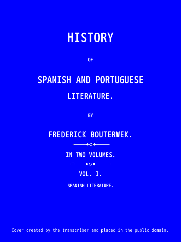 The following volumes on the literature of Spain and Portugal are extracted from a work, entitled, Geschichte der Poesie und Beredsamkeit seit dem Ende der dreizehnten Jahrhunderts, (History of Poetry and Eloquence from the close of the thirteenth Century,) in which M. Bouterwek has taken an historical and critical survey of the literature of the principal nations of Europe. The work consists of twelve volumes, published at different periods at Göttingen; the first volume having appeared in 1805, and the last, which contains an index to the whole, in 1819.1 The two volumes now translated are the third and fourth of the German original. vii