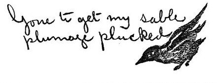 The note is signed with the usual drawing of a raven. On still another occasion he wrote the following farrago:
