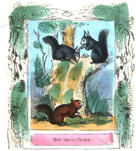 “The squirrel’s name was Robert, and his playmates called him Bob, for shortness. He was sent to a very excellent school, and his father and mother tried every means to teach him to climb up in the world; but I am sorry to say that Master Bob was sometimes naughty and disobedient. He paid little attention to the entreaties of his mother, and the good advice of his father, but was continually running away, and getting into all manner of troubles and difficulties. His father and mother lived in a very large and respectable old oak, where he might have been as happy as the day is long. Close to this oak was a large lake—”