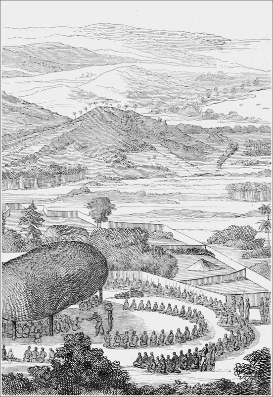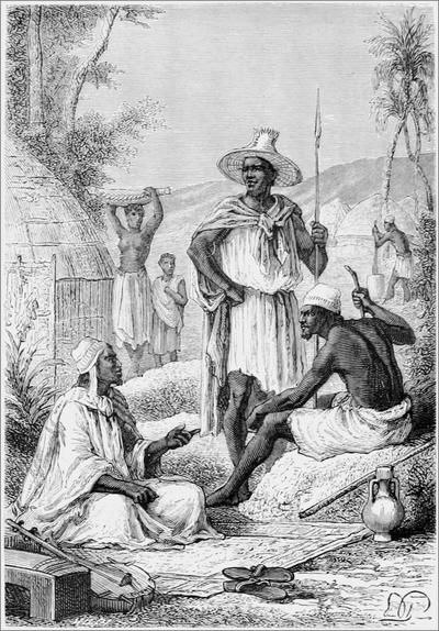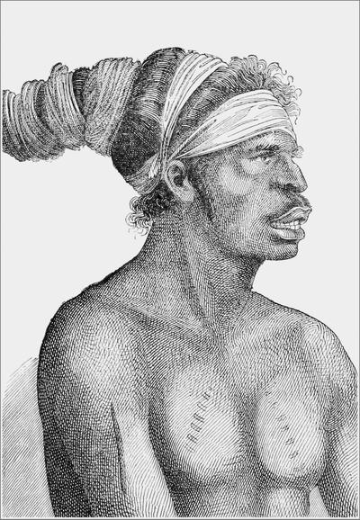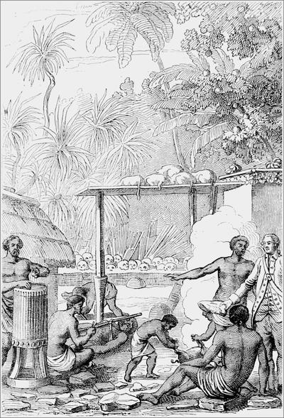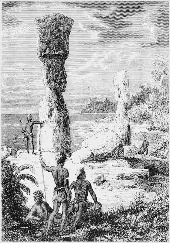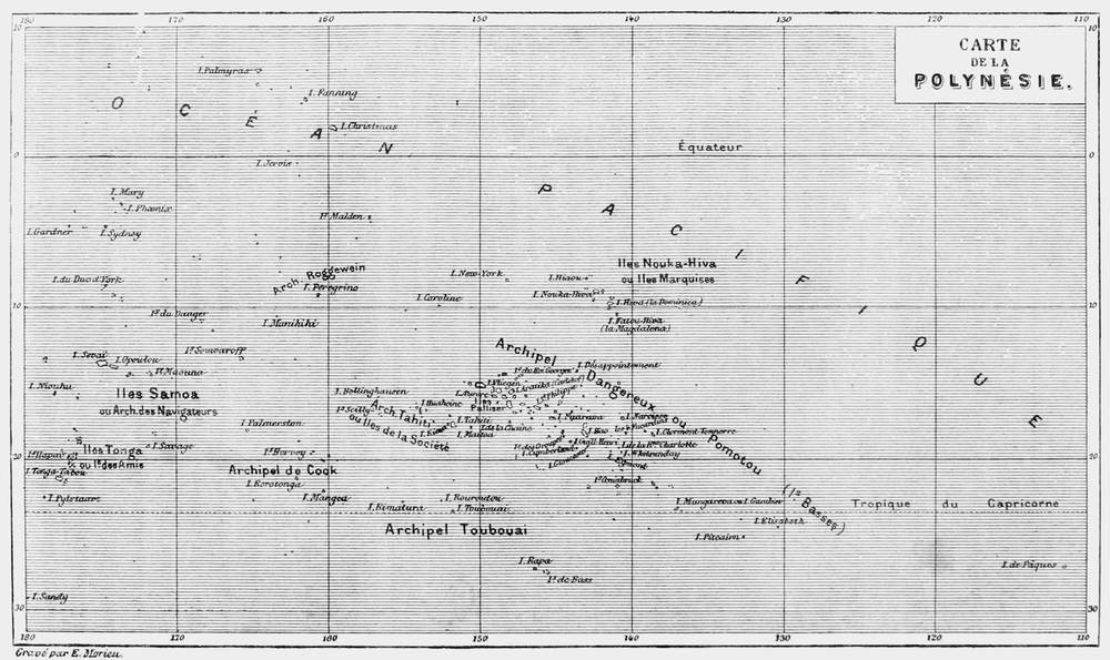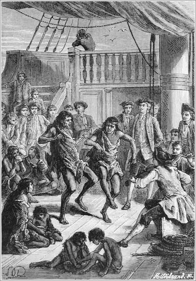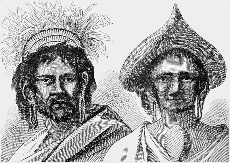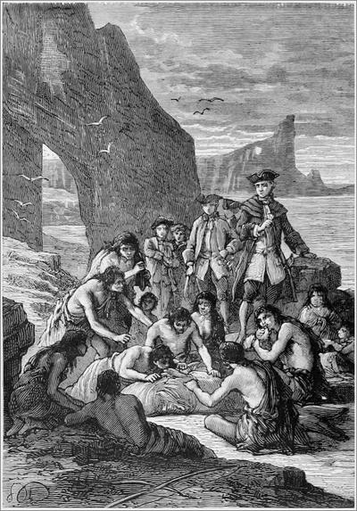 «Les habitants, dit l’abbé Prévost dans son Histoire des Voyages, étaient d’une taille droite et puissante, mais beaucoup plus noirs qu’aucun des Indiens qu’il avait vus dans la mer du Sud. Ils avaient les cheveux longs, noirs et plats, qui leur pendaient jusqu’aux cuisses. Tous les hommes étaient nus, mais les femmes portaient des feuilles ou des morceaux d’une espèce d’étoffe qui en paraît composée, ou des peaux de bêtes et d’oiseaux... Quelques-uns portaient des colliers et des bracelets de brins de bois et de coquilles; d’autres avaient au cou de petites baies rouges et des perles, qu’ils n’ont pas sans doute l’art de percer, puisqu’elles sont entaillées dans leur rondeur et liées l’une à l’autre avec un fil. Ils trouvaient cet ornement si beau, qu’ils refusaient les colliers de verre des Anglais. Leur passion n’était ardente que pour les couteaux et les instruments qui servent au travail.»