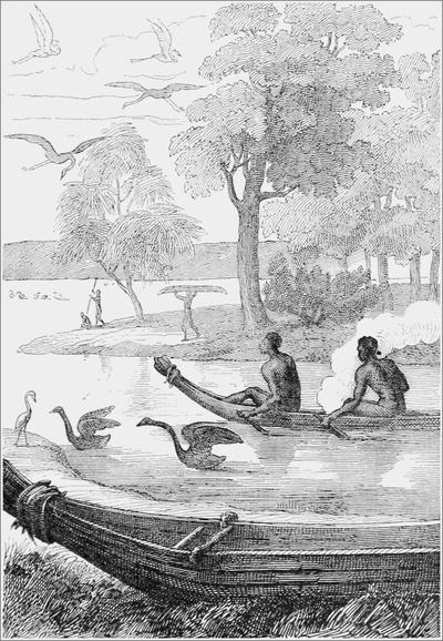 «Il avait été mis à terre, dit la relation, avec ses habits, son lit, un fusil, une livre de poudre, des balles, du tabac, une hache, un couteau, un chaudron, une Bible et quelques autres livres de piété, ses instruments et ses livres de marine. 13 Le pauvre Selkirk pourvut à ses besoins du mieux qu’il lui fut possible; mais, durant les premiers mois, il eut beaucoup de peine à vaincre la tristesse et à surmonter l’horreur que lui causait une si affreuse solitude. Il construisit deux cabanes, à quelque distance l’une de l’autre, avec du bois de myrte-piment. Il les couvrit d’une espèce de jonc et les doubla de peaux de chèvres, qu’il tuait à mesure qu’il en avait besoin, tant que sa poudre dura. Lorsqu’elle approcha de sa fin, il trouva le moyen de faire du feu avec deux morceaux de bois de piment, qu’il frottait l’un contre l’autre.... Quand sa poudre fut finie, il prenait les chèvres à la course, et il s’était rendu si agile par un exercice continuel, qu’il courait à travers les bois, sur les rochers et les collines, avec une vitesse incroyable. Nous en eûmes la preuve lorsqu’il vint à la chasse avec nous; il devançait et mettait sur les dents nos meilleurs coureurs et un chien excellent que nous avions à bord; il atteignait bientôt les chèvres, et nous les apportait sur son dos. Il nous dit qu’un jour il poursuivait un de ces animaux avec tant d’ardeur, qu’il le saisit sur le bord d’un précipice caché par des buissons, et roula du haut en bas avec sa proie. Il fut si étourdi de sa chute, qu’il en perdit connaissance; quand il reprit ses sens, il trouva sa chèvre morte sous lui. Il resta près de vingt-quatre heures sur la place, et il eut assez de peine à se traîner à sa cabane, qui en était distante d’un mille, et dont il ne put sortir qu’au bout de dix jours.»