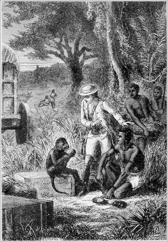 Des navets semés par l’équipage de quelque vaisseau, des choux palmistes, du piment et du poivre de la Jamaïque servaient à cet abandonné pour assaisonner ses aliments. Quand ses souliers et ses habits furent en pièces, ce qui ne tarda guère, il s’en fit en peau de chèvres, avec un clou qu’il employait comme aiguille. Lorsque son couteau fut usé jusqu’au dos, il s’en fabriqua avec des cercles de barrique qu’il avait trouvés sur le rivage. Il avait si bien perdu l’habitude de parler, qu’il avait de la peine à se faire comprendre. Rodgers l’embarqua et lui donna sur son vaisseau l’office de contre-maître.