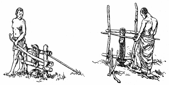 | c) | Das Rad an der Welle. Das Differentialwellrad bei den Chinesen. Die Baumwollentkernmaschine in Südasien | 41–42 | |