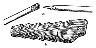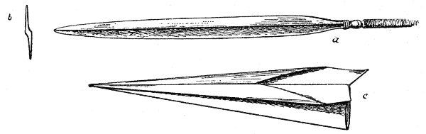 Dieses Bild ist nur sehr bedingt richtig. Man kann sich sehr wohl vorstellen, daß der Urmensch in Gegenden gelebt hätte, die wie die Steppe oder so mancher tropische Urwald mit seinem tiefen Humus ohne jeden Stein war. Dann wäre die Erfindung steinerner Waffen[S. 17] und Geräte ganz von selbst unterblieben, der Mensch hätte sich vielmehr mit Holz, Knochen, Muscheln, Horn u. dergl. Dingen zu behelfen gelernt, bis die Entdeckung der Metalltechnik ihn schließlich in eine günstigere Lage versetzt hätte. Alle diese Stoffe hat er nun aber auch dort herangezogen, wo ihm die Benutzung des Steins offenstand, ja von ihnen hat das Holz in demselben Maß vorgewaltet, wie es bis in die Neuzeit bei den Naturvölkern der Südsee und Amerikas der Fall gewesen ist, und wie man es selbst im Kulturbesitz entlegener Gegenden Europas überraschenderweise noch heute feststellen kann. Wenn die vorgeschichtlichen Funde ein anderes Bild ergeben, so liegt das einfach daran, daß wohl Stein, Muscheln und unter günstigen Umständen Knochen sich erhalten haben, nicht aber das vergänglichere Holz. An diesem und dem Stein hat also der Mensch sein Erfindungstalent zu üben zuerst Gelegenheit gehabt. Beim Stein können wir es mühelos noch an den vorgeschichtlichen Erzeugnissen selbst nachprüfen, hier und da auch bei einigen zurückgebliebenen Völkern der Gegenwart, während wir beim Holz auf diese allein angewiesen sind.