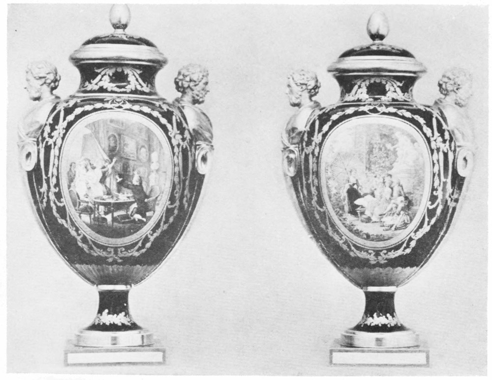 What a remarkable list of collectors France can write in her Golden Book of Art-Lovers—Jean{13} Grolier, De Thou, Pierre Jean Mariette, Cardinal Mazarin, Comte de Caylus—to name but a few of literally thousands! Nor must we forget Madame de Pompadour, whose library and marvelous collection of works of art were sold after her death. There is no question that Madame de Pompadour took a constructive interest in art and literature, an interest which led Voltaire to assert that without her patronage the culture of her time would have found itself in sorry plight under the rule of a king whose thoughts had little or nothing to do with the finer things of life, that king who stood at the palace window looking forth as the cortège of the Pompadour passed by in a drizzling rain and remarked: “It is a wet day for the Marquise!”