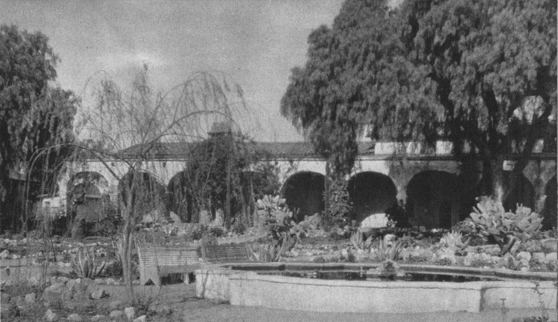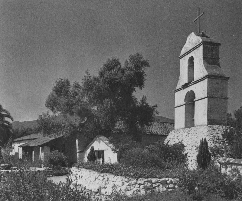 San Diego was first visited by Juan Rodriguez Cabrillo in 1542, but it was not until two hundred and twenty-seven years later that the fear that Russia or England might take possession of California induced King Carlos III of Spain to organize an expedition to colonize the land. It was in 1769 that a band of about two hundred men set out by land and sea to settle in Alta California. In the last company to come overland was Padre Junípero Serra, who, although already advanced in age, had been appointed Padre Presidente of the missions. This extraordinary man entered into a life of utmost hardship with a fiery enthusiasm that was never dampened throughout his life, and to him we owe the chain of historic missions that provide the only link to connect us with the early life of California and Spain. Twenty-one of these were established in California, forming an irregular line reaching from San Diego to Sonoma, and connected by El Camino Real (The Royal Road). Today the modern highway along the coast, U. S. 101, follows so closely the course of this road established by the pioneers one hundred and seventy years ago that one can easily say one is following in the footsteps of Father Serra and his companions.
