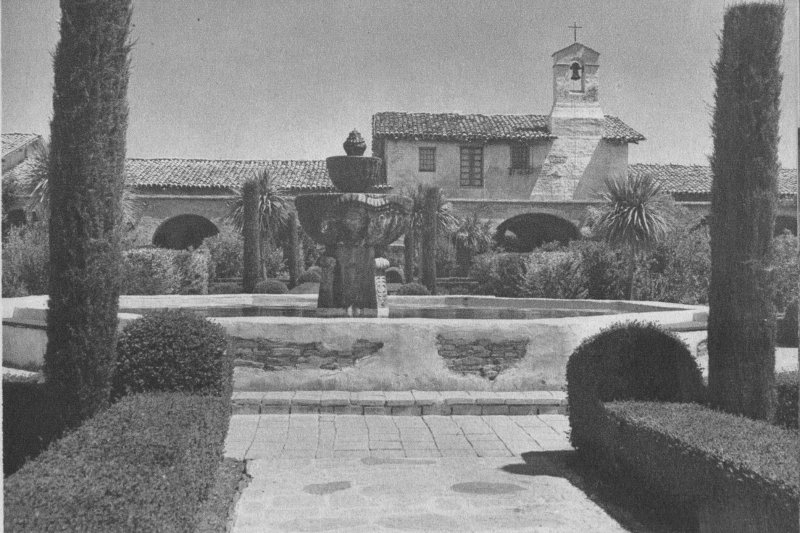 Begun in 1769, this chain of churches along El Camino Real was complete by 1823, and in these establishments the devoted followers of Padre Junípero Serra sought to win for Christ and the Crown of Spain devotees among the dusky inhabitants of this land. How well they succeeded 6 may be judged when we learn that often in the more prosperous missions as many as two thousand Indians were being trained at one time.