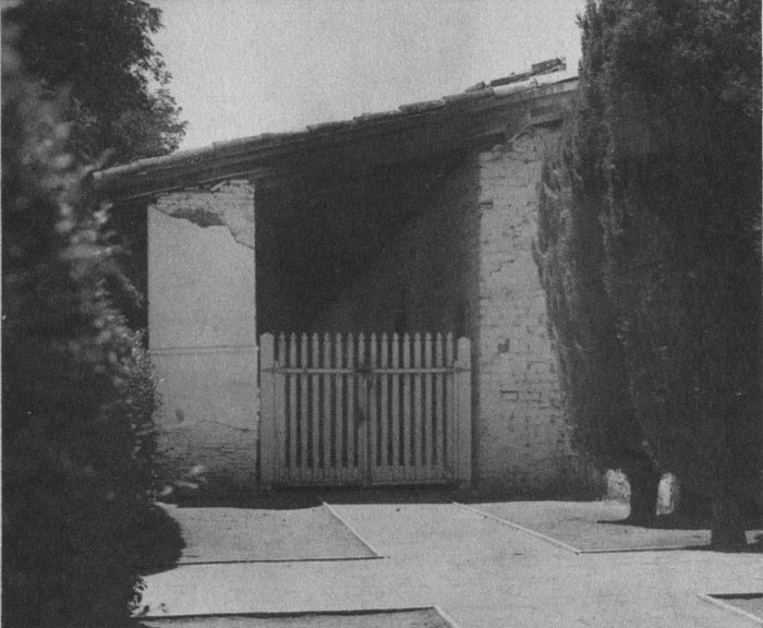 Mission San José de Guadalupe was at one time the most prosperous of all the missions. In livestock alone it had 12,000 cattle, 13,000 horses and 13,000 sheep. It was the centre of social life for the surrounding ranches and the stopping place for the Forty-niners who used the Mission Pass between San Francisco and the mines. Only a part of the living quarters remains today. Beside this building is the old cemetery, back of which is the Mission garden.