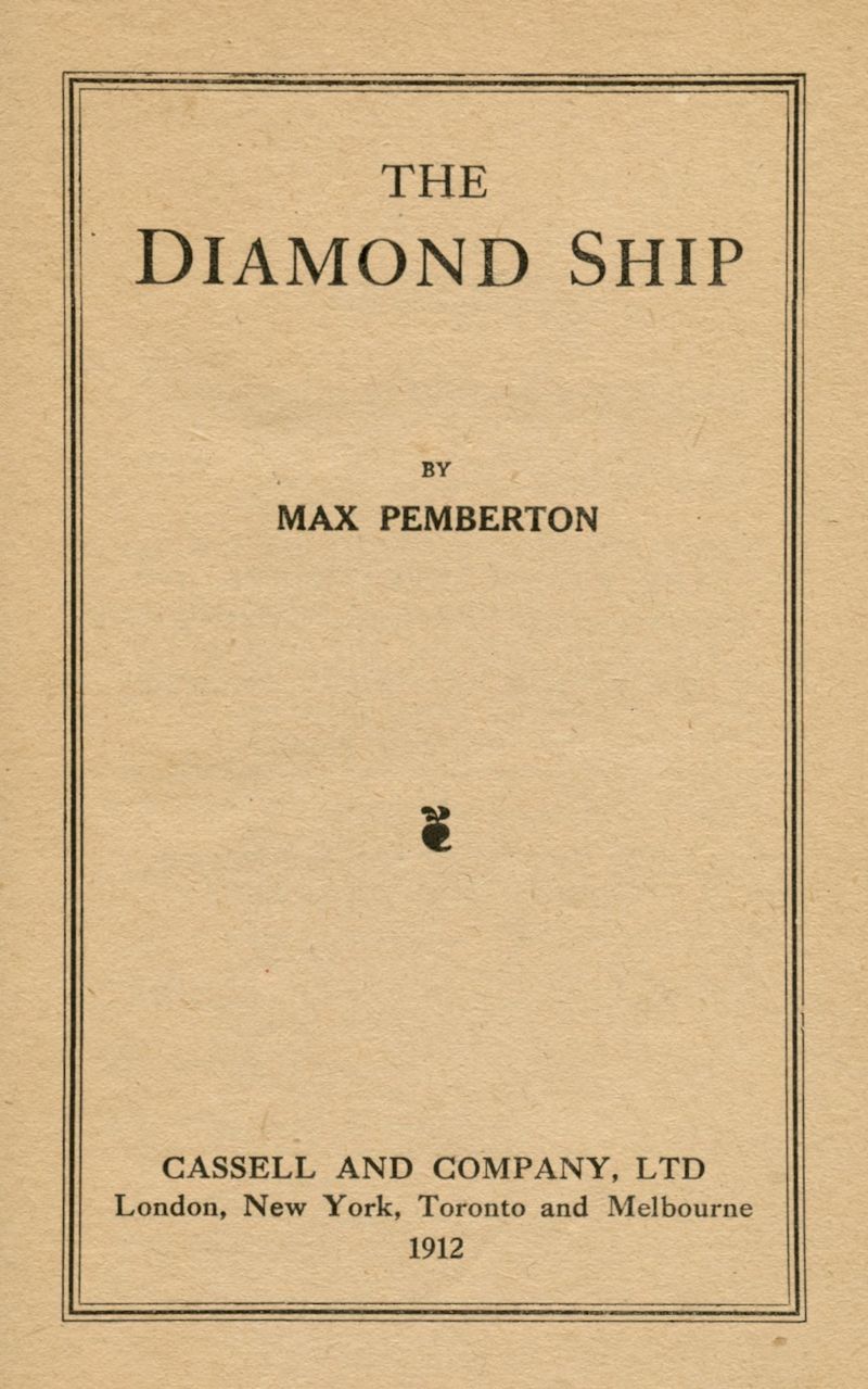 The Project Gutenberg EBook of The Diamond Ship, by Max Pemberton This eBook is for the use of anyone anywhere in the United States and most other parts of the world at no cost and with almost no restrictions whatsoever. You may copy it, give it away or re-use it under the terms of the Project Gutenberg License included with this eBook or online at www.gutenberg.org. If you are not located in the United States, you'll have to check the laws of the country where you are located before using this ebook. Title: The Diamond Ship Author: Max Pemberton Release Date: November 18, 2017 [EBook #55993] Language: English Character set encoding: UTF-8 *** START OF THIS PROJECT GUTENBERG EBOOK THE DIAMOND SHIP *** Produced by Mardi Desjardins & the online Distributed Proofreaders Canada team at http://www.pgdpcanada.net