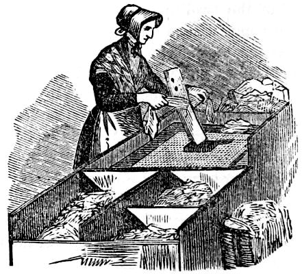The advantages which the civilized world owe to the invention of paper are beyond calculation, and almost out of the reach of thought. The great blessing of knowledge which it has conferred on mankind, together with its peculiar mission, renders it a subject of interest to all classes of society. The material of which the sheet of paper which the reader now holds in her hand, a few months ago, perhaps, hung with its ragged fellows from the back of some mendicant, fluttering along the street—or perhaps commenced its career in the lining of some dress, in all its purity of white and stiffening, and gradually descended through the various grades of usefulness, until at last it was fished up out of the gutter and thrust into the rag-picker's bag to meet a host of others that had travelled over the same despoiling scenes of ragdom. Rags have, at times, held no mean position in the political arena, for we read that "the chiffoniers,[200] or rag-dealers of Paris, rose against the police some years ago, because it was ordered, in certain municipal regulations, that the filth of the streets should be taken away in carts, without time being allowed for its examination by those diligent savers of capital."