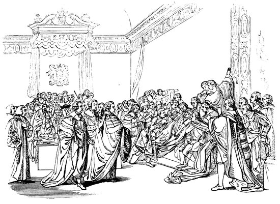 The court now despaired of bending the stubborn integrity of the Chief Justice, and determined at all events to displace him. Accordingly, as a preliminary to his removal, he was summoned before the Council and charged with several frivolous accusations, some of them founded upon alleged malversations while he was Attorney General, to all of which he returned distinct answers. Soon afterwards, being again summoned to appear before the Council, he was reprimanded, sequestered from the Council-table during the King’s pleasure, enjoined not to ride the summer circuit as Judge of Assize, and ordered to employ his leisure in revising certain “extravagant and exorbitant opinions” set down, as was pretended, in his Book of Reports. He received his writ of discharge from the office of Chief Justice, in November, 1616; and was succeeded by Sir Henry Montague, who was expressly warned by the Lord Chancellor Egerton “to avoid the faults of his predecessor, who had been removed for his excessive popularity.” The discharge of a judge of unrivalled learning and incorruptible integrity for the exercise of the very qualities which rendered him an honour and an ornament to his station, forms a part of the long catalogue of weak and wicked actions which disgraced the reign of James I., and directed the course of events to that catastrophe by which the fate of the Stuart family was decided.