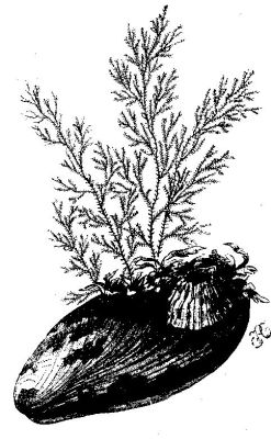 The tall branches in Fig. 1 are hydroids growing upon the shell of a dead mussel. A barnacle, too, has lived and died on this pretty shell, and little sea-weeds cluster around its remains.