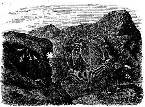 We can form but little idea of the immense numbers of animals thus leading quiet contented lives, and drawing from the surrounding water all that is needed for their support. They can not go in search of food, and they take only such as floats toward them. Still, they seem to have some choice in the matter, as they reject from their mouths any food they are not suited with. Many of these curious animals are glowing with bright colors, and surrounded as they are with a great variety of plants, they give to the bottom of the ocean a marvellous beauty.