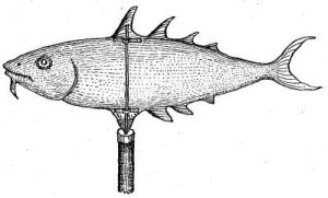 The weather-vane (Fig. 4) may be made by flattening the side of one of the cans, when, if the figure of the fish is drawn with the point of a knife, any tinman will cut it out for a few cents.