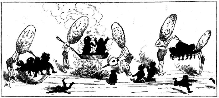 So, one Saturday morning, mother decided to set up a "pound" in our last summer's picnicking basket. At breakfast she declared to father that her patience with us had "given out," and that she resorted to this as the last hope of reforming her careless young people.