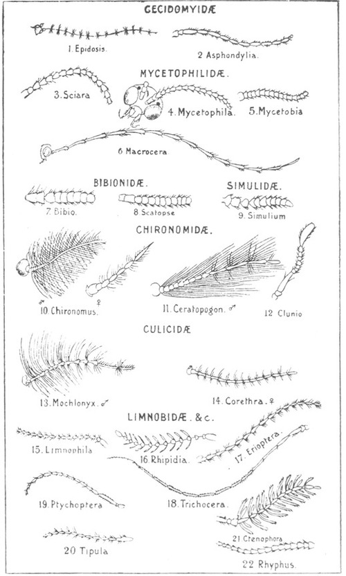 The first mentioned sub-division comprises all the gnats, midges, and most of the slender flies which are outside the scope of the present work, but it also includes a few kinds of more stoutly built flies, to which some allusion will be made in the following pages, as for example, the breeze-flies, Tabanidæ.