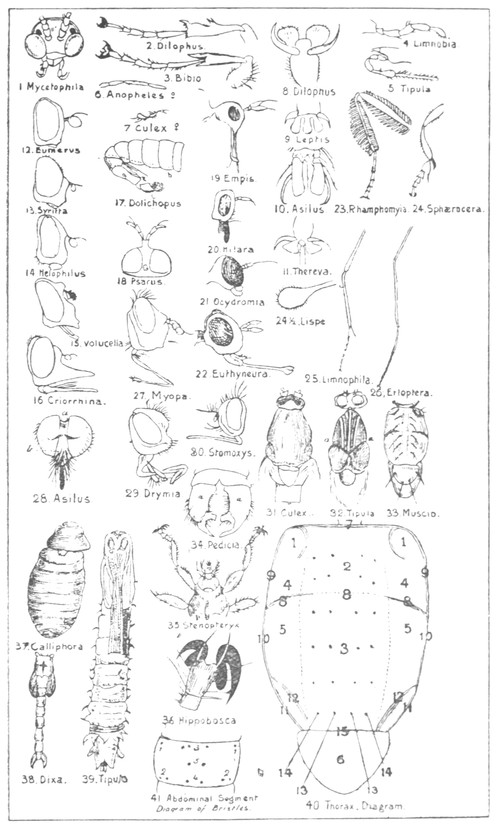 Again, if we tried to group our flies with adequate regard to their very diverse habits of life, in the larval stage as well as to their subsequent metamorphoses, we should find that these are details which are obscure and in many cases unknown or imperfectly recorded. However, after much study and many revisions, a scientific classification has been contrived based upon the minutely differentiated characteristics which are technically explained in the Appendix to this booklet.